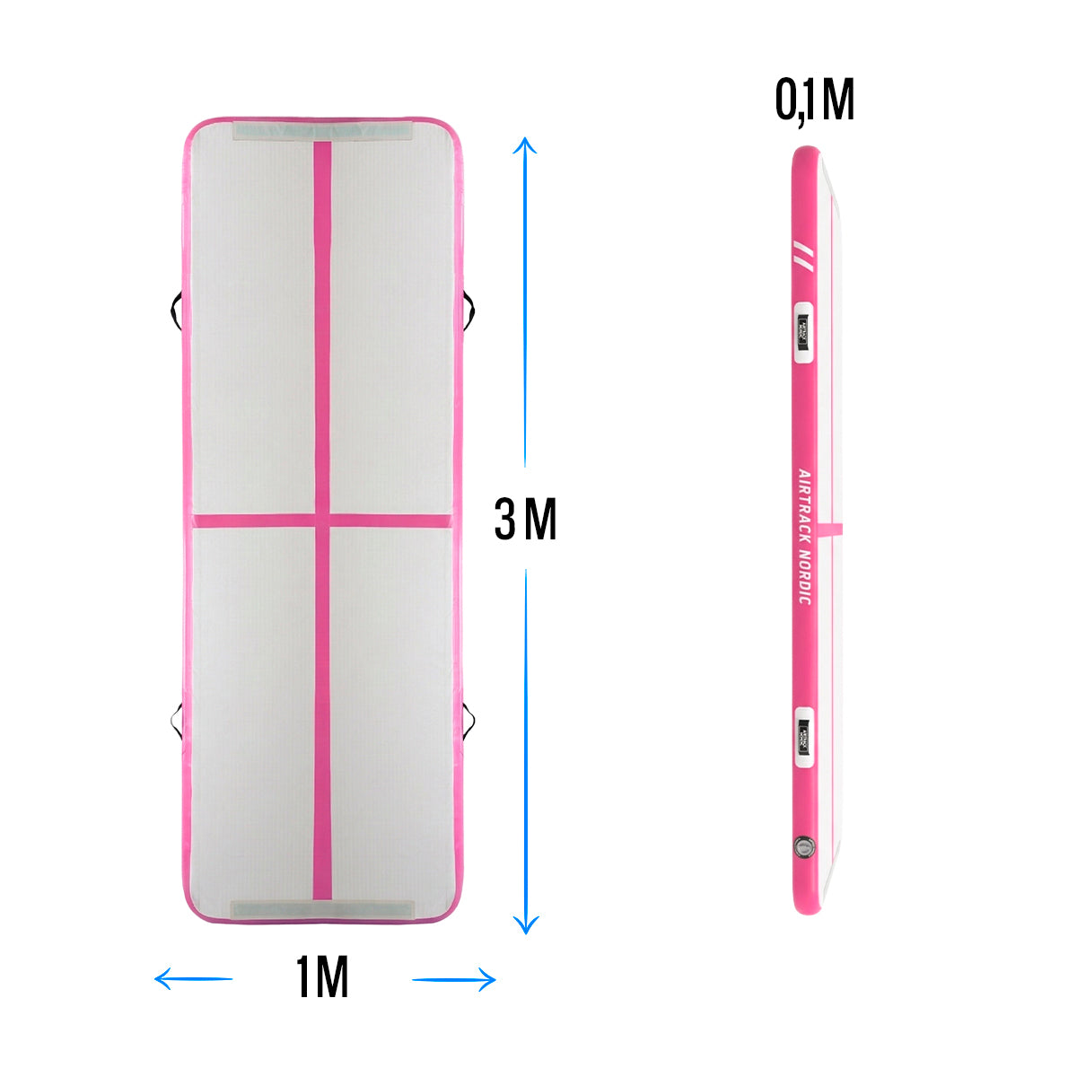 AirTrack Nordic Home 3m gymnastikmatta är 3 meter lång, 1 meter bred och 10 centimeter tjock. AirTrack Nordic Home 3M finns i blått, rosa, mint, korall, lila och svart.